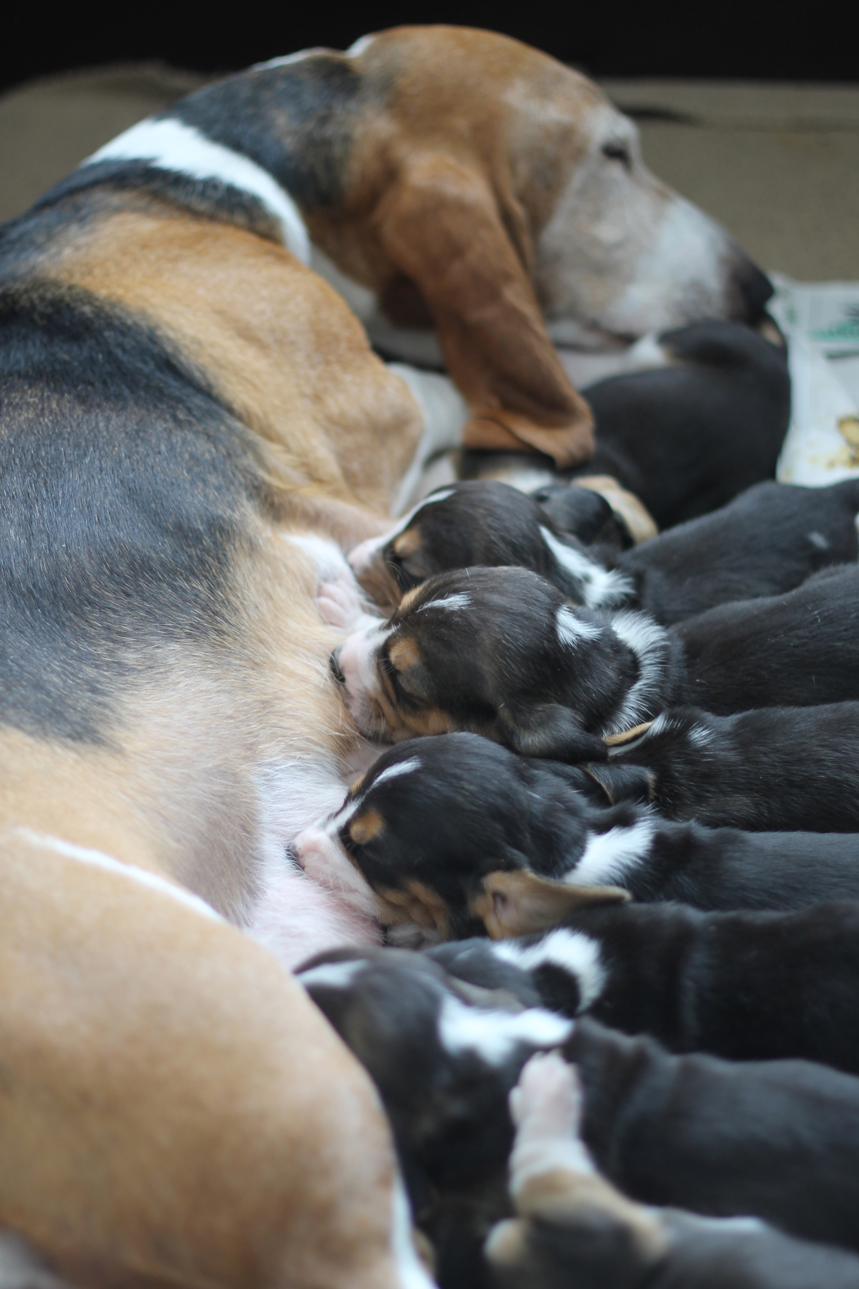 Demoiselle de Bérénice en haar pups Dit is het nestje van Demoiselle de Bérénice en Camille de Bérénice, vier reuen en vijf teven van de familie Don, geboren op 13 april jl. Demoiselle is net als Doremi een fantastische moeder.
