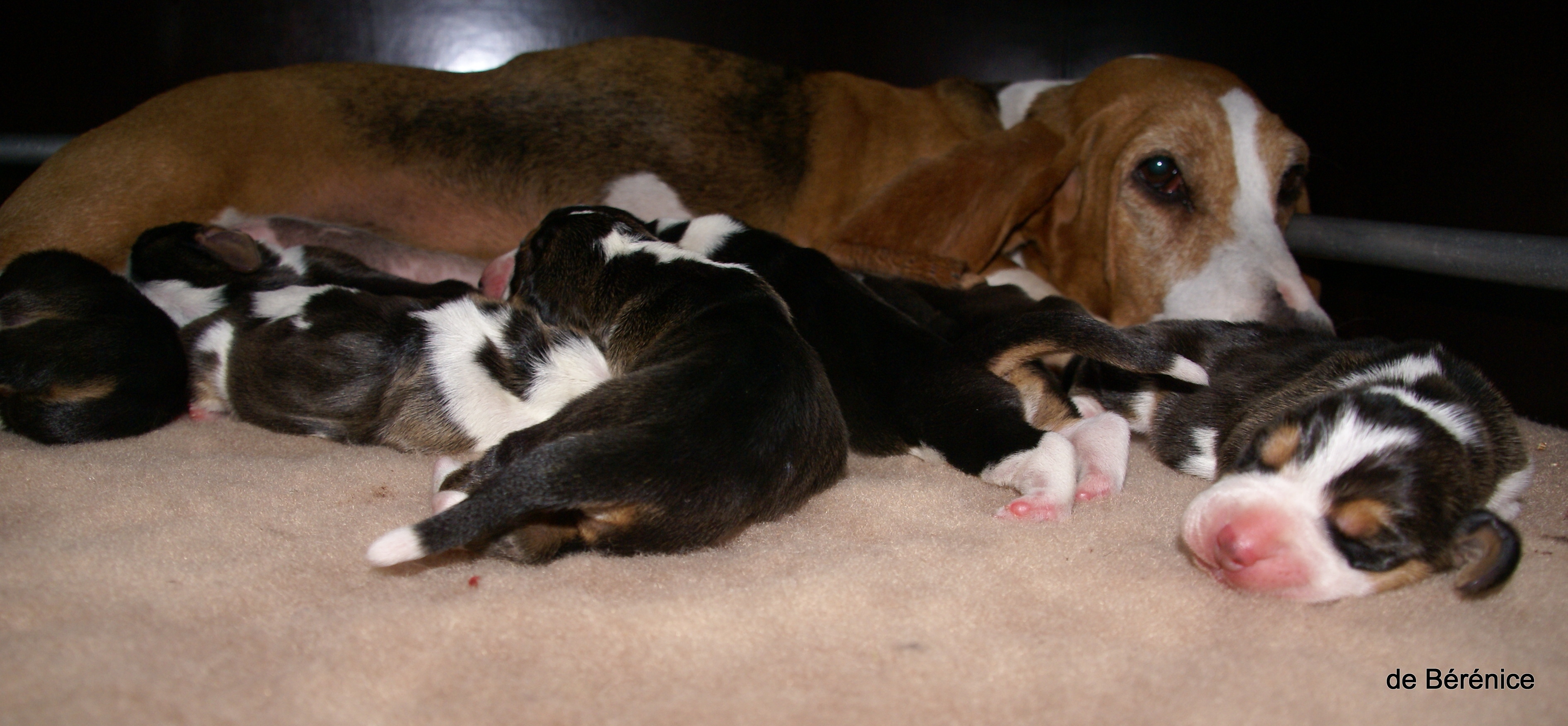 Pups van Fanfare tevreden maatjes Hier en daar een glinstering, de oogjes gaan open. Fanfare is een schatje voor haar pups. trots is ze zeker heerlijk gedronken!